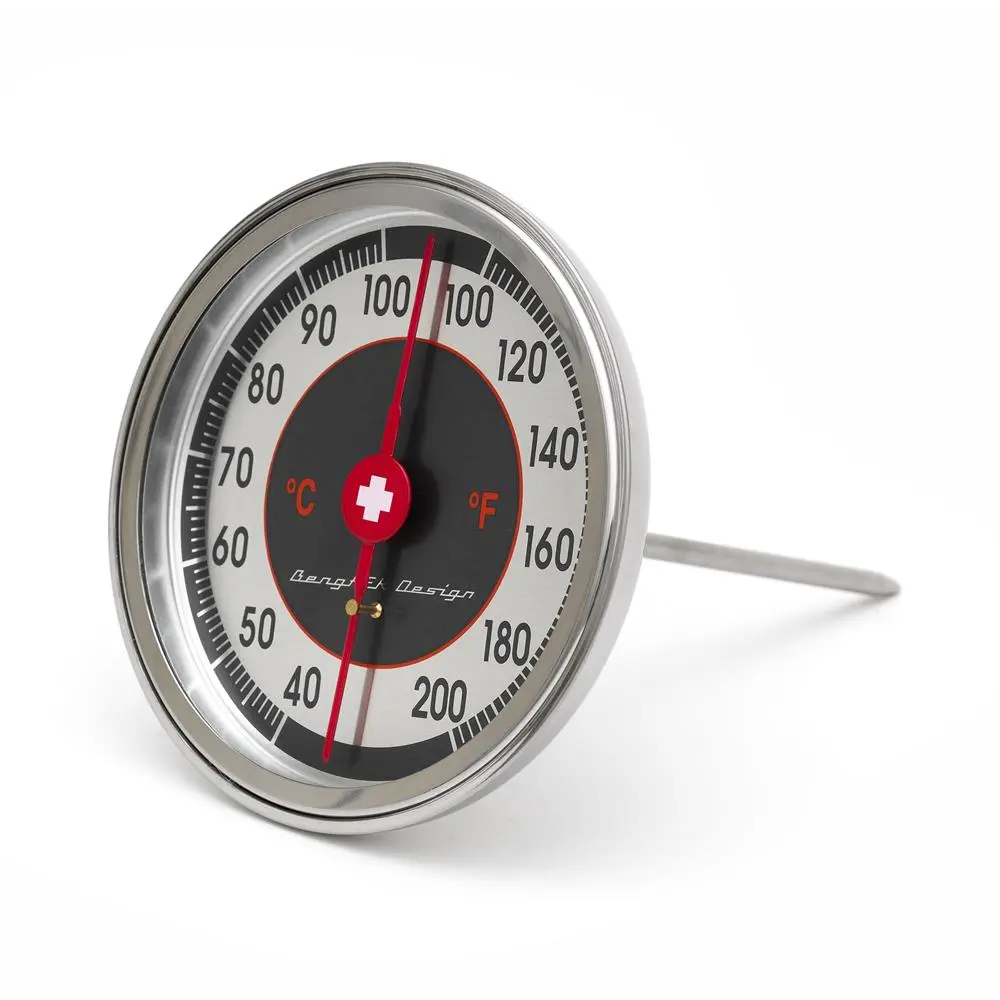 Préparez un plat de poulet, poisson ou viande à la perfection avec le thermomètre à viande de Bengt Ek Design. Réalisé en acier inoxydable avec un design simple, il est doté d’un grand afficheur qui affiche les valeurs en Celsius et Fahrenheit. Associez le thermomètre à d’autres produits pratiques de Bengt Ek pour faciliter la cuisine !