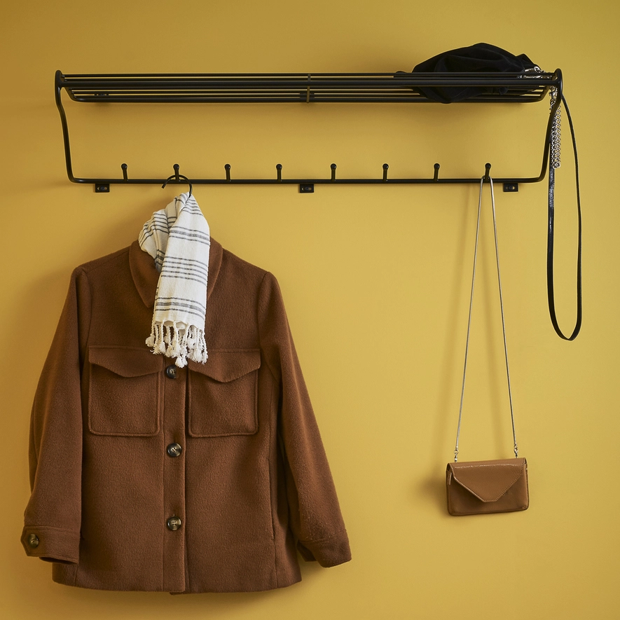 Cette étagère à chapeaux de Maze (Suède) d’un style épuré s’inscrit dans la tradition du design scandinave. Avec son grand espace de rangement et ses onze crochets, placée dans votre entrée, cette étagère discrète et peu encombrante sera très utile.